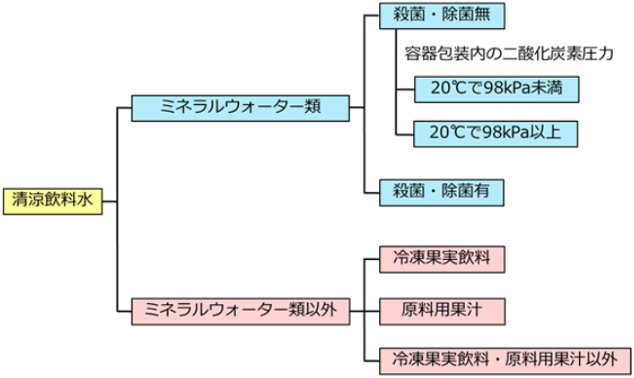 《清涼飲料水》は、「乳酸菌飲料、乳および乳製品を除く酒精分1容積パーセント未満を含有する飲料」をいいます。